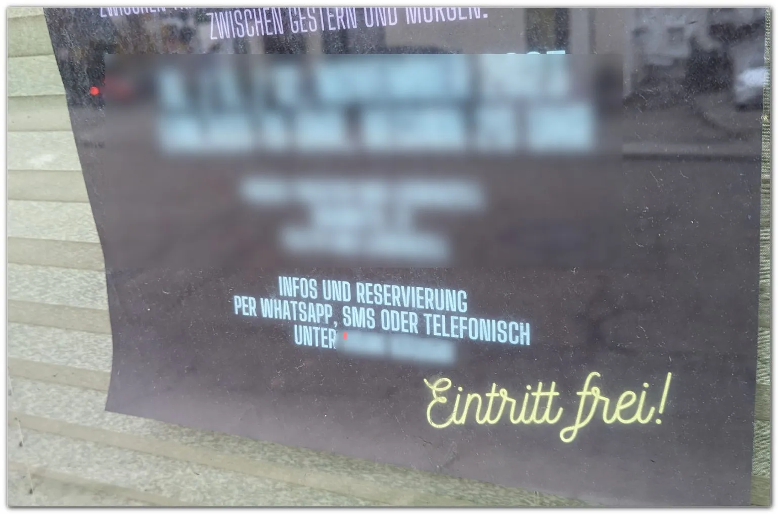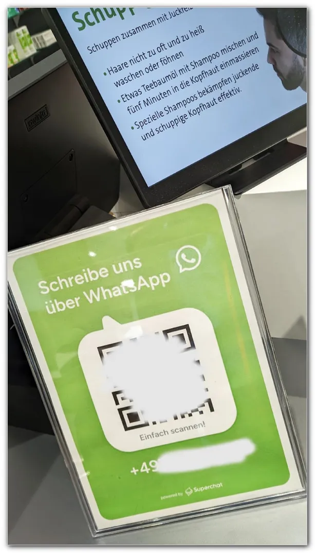 darf ich fragen warum du die Nummer und den QR-Code unkenntlich machst? Ich bin der Meinung wer so damit wirbt hat sein Recht auf Privatsphäre schon lang an Meta abgeben und muss mit Spam leben.