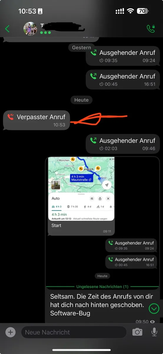 10. Juni 2025 um 10:53 #1 Threema-Version 6.8 Ich nutze Threema am iPhone 15. eben habe ich bemerkt, dass sich die Zeit eingehender unbeantworteter Anrufe zur aktuellen Zeit schiebt. Version 6.8 (6847)