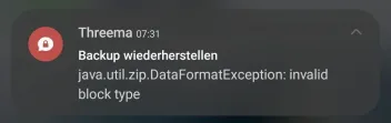 Wieso die Wiederherstellung fehlschlägt, wenn der Nutzer währenddessen auf das Threema App-Icon tippt, ist mir ein Rätsel. Wie auch immer, ich habe den Fehler an Threema gemeldet.